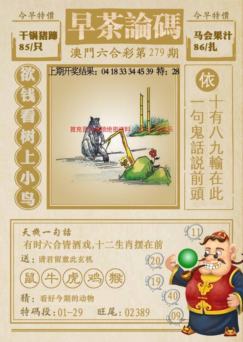 276期:家野两肖〖家禽+猴龙〗开:鸡09准 |