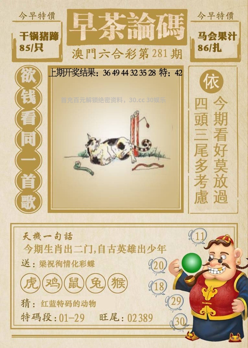 281期:家野两肖〖家禽+猴鼠〗开:羊47准 |